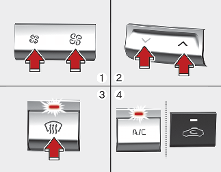 외기 유입 및 에어컨이 자동으로 선택되지 않을 경우에는 해당 버튼을 눌러 작동하십시오.