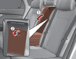 뒷좌석 암레스트(1)를 내리고, 뒷좌석 중앙에 있는 커버(2)를 여십시오.