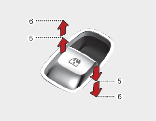 해당 유리창 열림/닫힘 스위치를 첫번째 걸리는 위치(5)까지 누르거나 당기면 해당 유리창이 열리거나 닫힙니다.