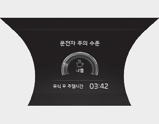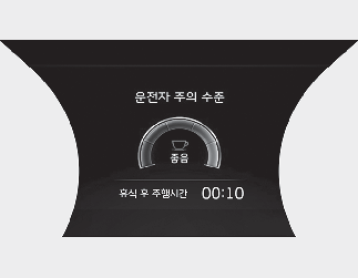 운전자 주의 수준이 1단계 미만으로 떨어지면 휴식 권유 문구가 표시되고 경고음이 울립니다.