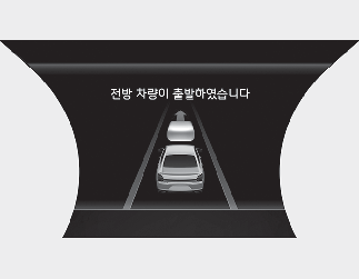 정차 중에 앞 차량이 출발하면 알림 문구가 표시되고 알림음이 울립니다.