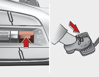 스마트 크루즈 컨트롤이 일시 해제 된 후 다시 켜려면 + 스위치를 올리거나, - 스위치를 내리거나,