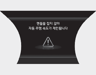 핸즈오프에 의해 고속도로 주행 보조가 꺼지면 주행속도가 제한됩니다. 주행속도 제한 기능이 작동하는 중에는 지속해서 경고문이 표시되고, 경고음이 울립니다.