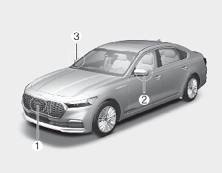 [1] : 광각-전방 카메라, [2], [3] : 광각-좌/우측방 카메라(실외 미러 하단) [4] : 광각-후방 카메라