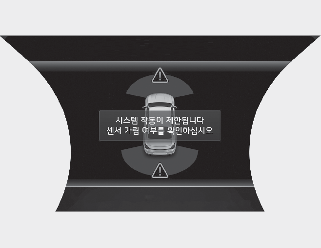 하지만 아래와 같은 현상들이 나타났을 때에는 초음파센서가 손상되었는지 또는 가림이 있는지 확인한 후 시스템에 고장이 있는 것으로 판단되면 가까운 자사 직영 서비스센터나 서비스협력사에서 점검을 받으십시오.