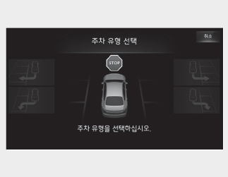 운전자가 주차유형 선택 전 주차/뷰 버튼을 눌렀다 떼서 주차 기능을 종료한 경우, 정차 상태에서 주차/뷰 버튼을 다시 길게 누르면 주차 유형 선택 단계로 갑니다.