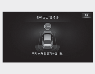 ) 버튼을 누르거나 인포테인먼트 시스템 안내 화면의 「취소」를 선택하면 원격 스마트 주차 보조는 스마트 출차 기능을 종료합니다.