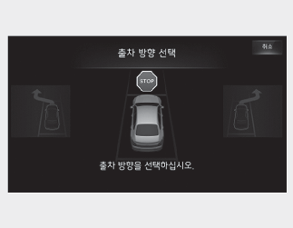 운전자는 인포테인먼스 시스템 화면의 출차 방향을 터치하거나 중앙 집중키를 조작하여 원하는 출차 방향을 선택하십시오.