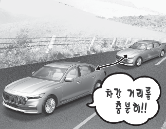 차간거리를 충분히 확보하고 스티어링 휠을 천천히 조작하십시오.