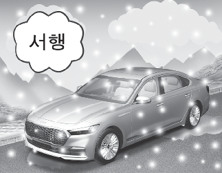 장마철이나 비가 많이 내리는 지역 등을 통과할 때는 특별히 주의하십시오. 타이어 중앙 부분(타이어 휠 허브)이 잠길 정도로 수위가 높으면 운행하지 마십시오. 물을 통과할 경우는 서행하고 물속에서는 제동 성능이 제대로 발휘되지 않을 수 있으므로 적당한 제동 거리를 유지하십시오. 물을 통과한 뒤에는 차를 서행하면서 브레이크를 부드럽게 몇 번 밟아 브레이크를 말리십시오.