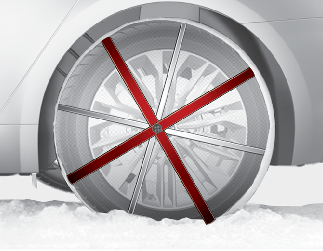 눈길, 빙판길 외에는 체인의 사용을 삼가시고, 체인 장착 시에는 체인 제작사에서 추천하는 규정속도 이하 또는 30 km/h 이내로 주행하십시오.