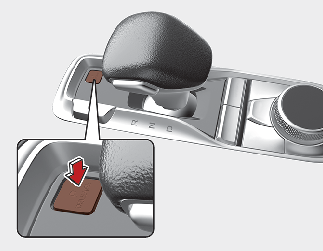 「R」, 「N」, 「D」 및 수동 변속 모드에서 「P」단으로 변속하기 위해서는 차량이 정지된 상태에서 「P」버튼을 누르십시오.