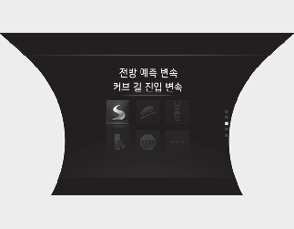 전방 예측 변속의 작동을 위해 전방의 상황이 감지된 경우, 계기판 중앙부에는 감지된 상황의 아이콘이 총 6개 켜집니다.