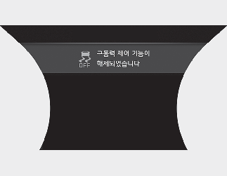 이때, 구동력 제어 기능이 해제되나 안전을 위한 브레이크 제어 기능은 작동합니다.LCD 표시창에 경고문이 표시됩니다.