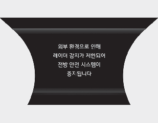 인식 센서 경고문이 표시되지 않거나 경고등이 켜지지 않더라도 전방 충돌방지 보조가 정상적으로 작동하지 않을 수 있습니다.