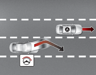 차로변경 시 옆 차로의 선행 차량과의 충돌 위험이 판단되면 충돌하지 않도록 조향을 도와줍니다.
