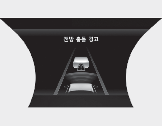 경고문, 경고음, 스티어링 휠 진동을 통해 전방 충돌 경고를 알립니다.