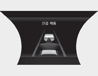 긴급 제동에 의한 정차 시 계기판 등에 경고문이 표시됩니다. 안전을 위해 즉시 브레이크 페달을 밟고 주변 상황을 확인하십시오.