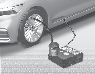 타이어 임시 수리 장치는 못이나 날카로운 물체로 인한 트레드 부(바닥면) 펑크로 타이어 공기압이 충분하지 않은 경우에만 사용하십시오 .