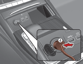 차량 파워 아웃렛 연결 커넥터 및 케이블(4)을 차량의 파워 아웃렛에 연결하십시오.