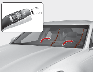 엔진 시동을 끈 후 20초 이내에 와이퍼가 최상단으로 올라 갈 때까지 와이퍼 스위치를 2초 이상 「MIST」위치로 올리십시오.
