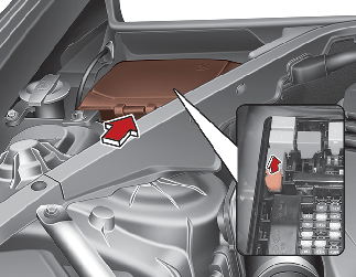 시동 「OFF」 상태에서 모든 전기장치 스위치를 끈 후, 엔진룸 내 퓨즈/릴레이 패널에 있는 퓨즈 교체용 클립(퓨즈 뽑개)으로 끊어진 퓨즈를 제거하고 같은 용량의 예비 퓨즈를 손으로 단단히 삽입하십시오.