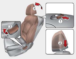 Нажмите кнопку фиксатора подголовника (3), и одновременно потяните подголовник вверх (4).