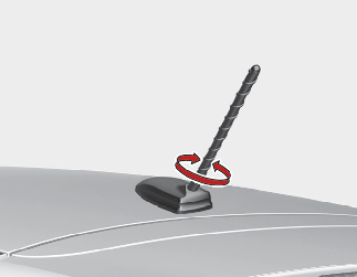 На крыше автомобиля имеется штыревая микроантенна для приема сигнала радиостанций. Штыревая антенна является съемной. Чтобы снять антенну, поверните ее против часовой стрелки. Чтобы установить антенну, поверните ее по часовой стрелке.