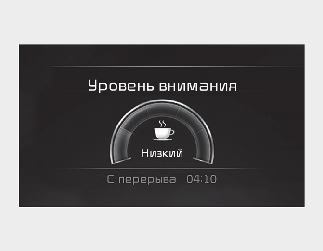 Сообщение «Рекомендуется сделать перерыв» появляется на панели в сопровождении звукового сигнала, предупреждая водителя о необходимости сделать перерыв, если уровень внимательности падает ниже 1.