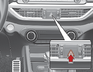 Нажмите на выключатель аварийной сигнализации при любом положении замка зажигания или кнопки «ENGINE START/STOP» (запуска/остановки двигателя). Выключатель аварийной сигнализации находится на центральной консоли панели переключателей. Все указатели поворота мигают одновременно.