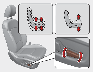 The power seat is driven by an electric motor. Stop operating once the adjustment is completed. Excessive operation may damage the electrical equipment.