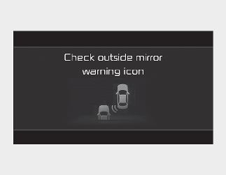 When the warning light on the side view mirror (outside mirror) is not working properly, the ‘Check outside mirror warning icon’ warning message will appear (turns off after a certain time), and warning light will illuminate on the cluster. We recommend that you have your vehicle inspected by an authorised Kia dealer/service partner.