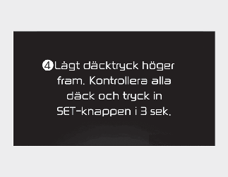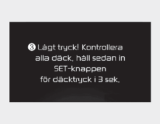 Du bör återställa systemet genom att trycka på TPMS SET-knappen enligt proceduren och spara det aktuella däcktrycket.