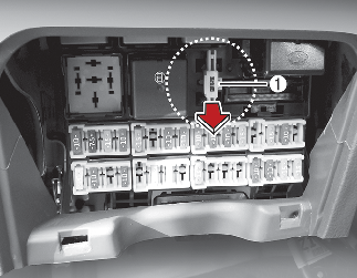 O veículo está equipado com um fusível de memória (1) para evitar a descarga da bateria caso esteja estacionado sem estar a ser utilizado durante períodos prolongados.