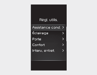 Pour votre sécurité, modifier les Réglages utilisateur après avoir stationné le véhicule, serré le frein de stationnement et placé le levier de sélection en position P (stationnement).