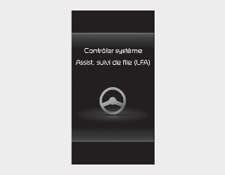 Lorsque l'assistance au suivi de voie ne fonctionne pas correctement, le message « Check Lane Following Assist (LFA) system (Contrôlez le système d’assistance au suivi de voie) » (ou « Check LFA (Lane Following Assist) system (Contrôlez le LFA) ») apparaît et le témoin s’allume en jaune sur le combiné d’instruments. Si cela se produit, faire vérifier le système par un atelier professionnel. Kia recommande de consulter un concessionnaire/réparateur agréé Kia.
