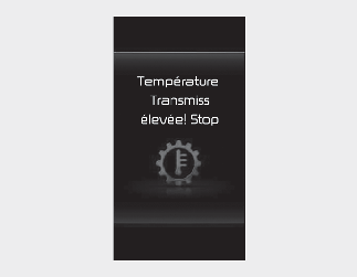 Lorsque l'embrayage est en surchauffe, le mode de sécurité s'enclenche et l'indicateur de rapport du combiné clignote avec une alerte sonore. À ce moment, le message d'avertissement « Transmission temp. is high! Stop safely » (Température boîte de vitesses élevée ! Arrêtez-vous) apparaît sur l'affichage LCD et la conduite peut manquer de souplesse.