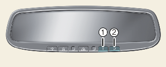 Press the ON/OFF button (1) to turn the automatic dimming function on. The mirror indicator light (2) will illuminate.