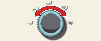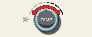 To change the air temperature in the passenger compartment, turn the knob to the right for warm and hot air or to the left for cooler air.