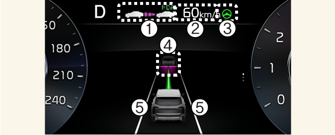 You can see the status of the Highway Driving Assist operation in the Driving Assist view on the cluster. Refer to More Details.