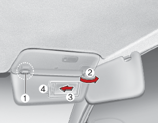 To use the vanity mirror, pull down the visor and slide the mirror cover (3).