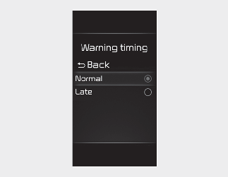 Normal: When this condition is selected, the initial Forward Collision Warning is activated normally.