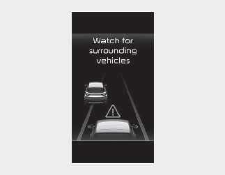 V naslednjem primeru se na sklopu instrumentov prikaže opozorilno sporočilo "Watch for surrounding vehicles" (Pazite na vozila okoli vas) in oglasi se opozorilni zvočni signal, ki bo opozoril voznika na razmere na cesti.