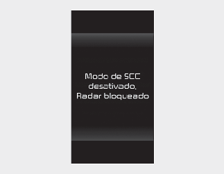 Se isso acontecer, a mensagem de aviso "Smart Cruise Control disabled. Radar blocked obscured" (ou "SCC (Smart Cruise Control) disabled. Radar blocked" - Controlo de velocidade inteligente desativado, Radar bloqueado.) é apresentada e as luzes de aviso acendem-se no painel de instrumentos.