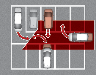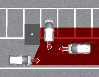 O sistema de Segurança de tráfego cruzado à retaguarda pode detetar veículos que passam à sua frente ao estacionar em marcha-atrás num espaço de estacionamento com um muro ou estrutura na área traseira ou lateral. Neste caso, a função pode emitir o aviso de forma desnecessária e controlar o travão.