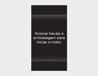 Carregue a fundo no pedal da embraiagem e coloque a caixa de velocidades em ponto-morto. Com os pedais da embraiagem e dos travões sob pressão, coloque o botão ENGINE START/STOP (ligar/desligar o motor) na posição START. Se o estado for alterado para ACC, será apresentado no combinado conforme o seguinte pop-up.