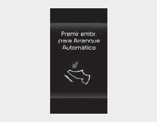 Acidentalmente, quando o motor é desligado ou o veículo se está a mover, se a mudança for engatada e o pedal da embraiagem não for premido, o sistema apresenta a mensagem de aviso tal como apresentado acima. Nesta altura, se o condutor premir completamente o pedal da embraiagem, o motor é reiniciado automaticamente (apenas disponível nos sistemas ISG equipados com reinício tardio, exceto MHEV).