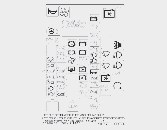 A designação e a capacidade dos fusíveis/relés são indicadas na etiqueta colocada na parte interior das tampas dos respetivos painéis.