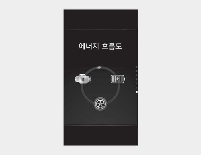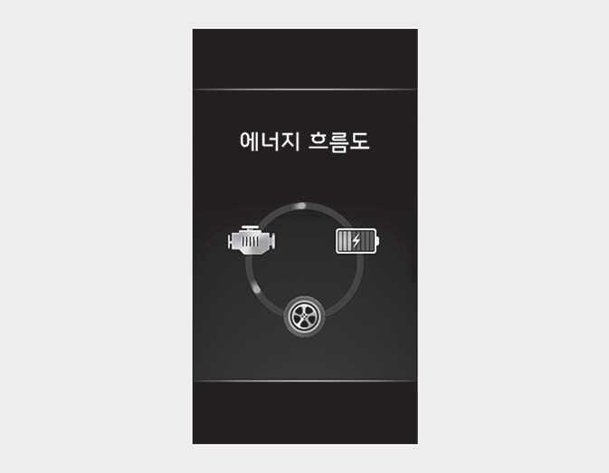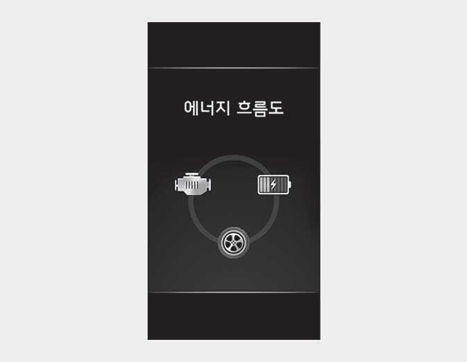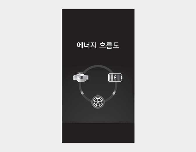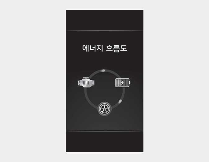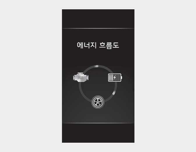 차량 주행 상태에 따른 하이브리드 시스템의 동력 전달 상태, 출발과 가속시, 정속 주행시, 감속시 등 각 영역별 엔진 상태를 표시합니다.