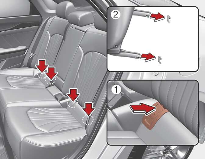 어린이 보조좌석 심볼이 뒷좌석 등받이 하단부에 위치하여 어린이 보조좌석용 하부 부착구의 위치를 나타냅니다.